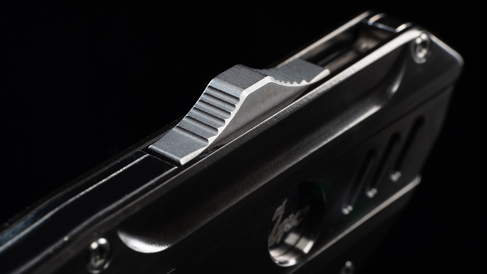 Made by CNC machining, it comes in 3 different material options: aluminum, titanium, and zirconium. Not only that, but you can also add on different blade styles.