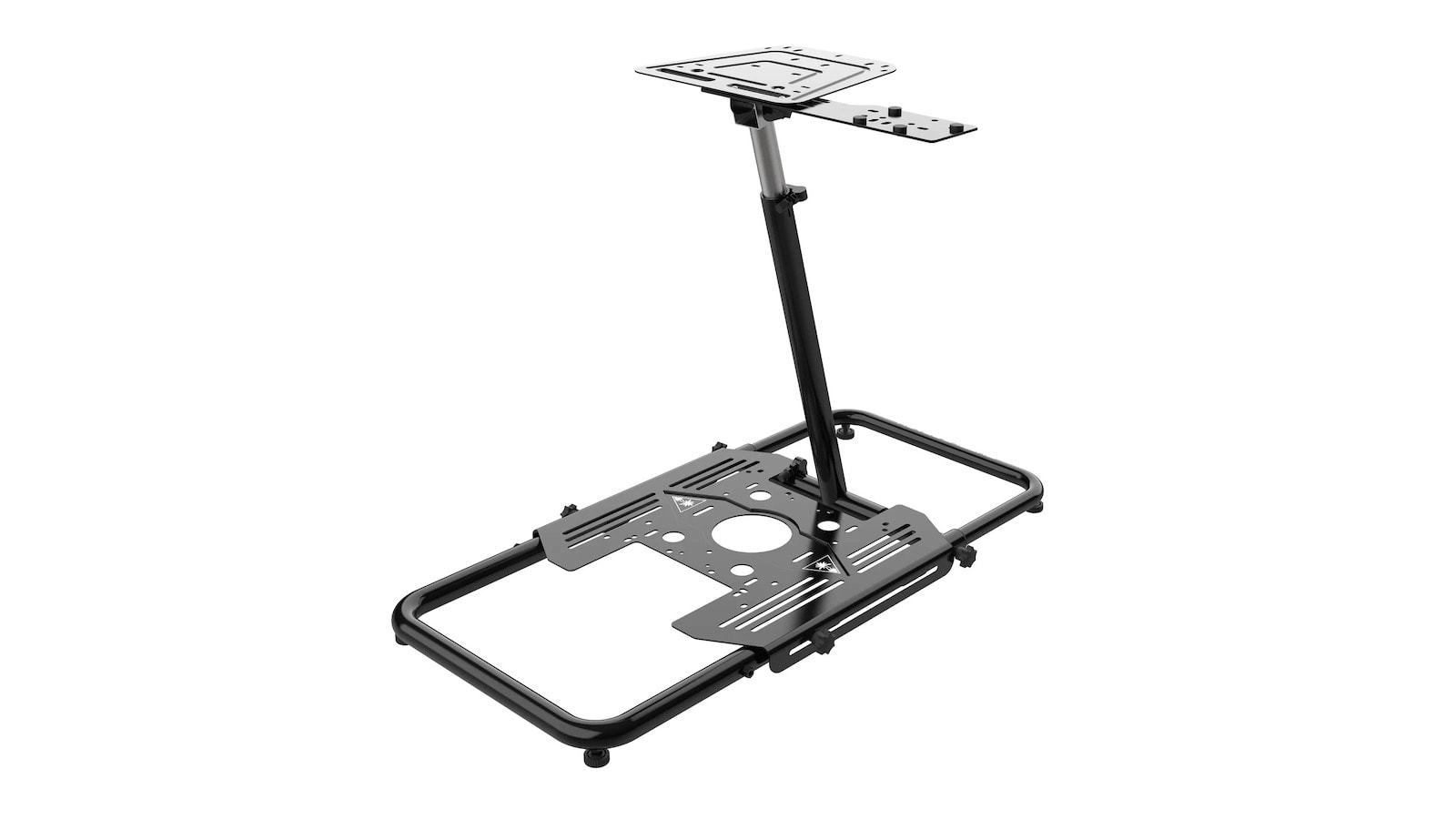 Not only that, but the lower platform can also adjust for rudder or racing pedals. With a reversible design, it can face either direction. And its solid steel mounting platforms are predrilled for the correct fit. Finally, it has anti-wobble adjustable rubber feet to remain firmly in place. Fold it flat to stow it away easily!.