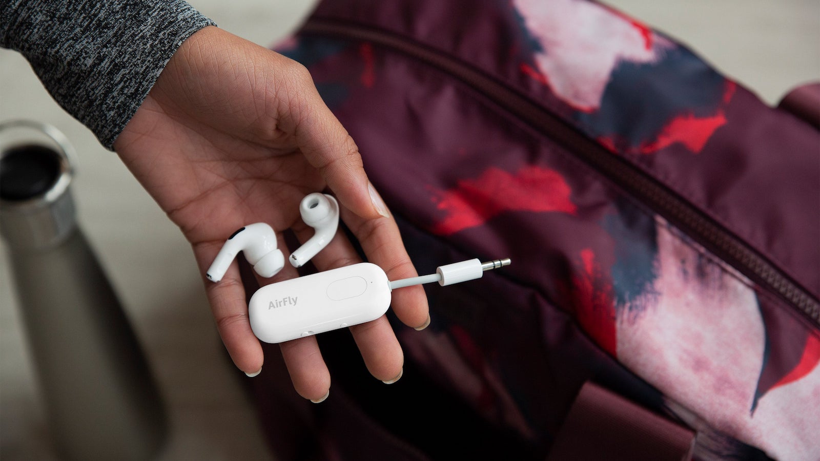 Listen to movies or any other in-flight content comfortably with your wireless headphones, with the Twelve South AirFly Bluetooth transmitter.