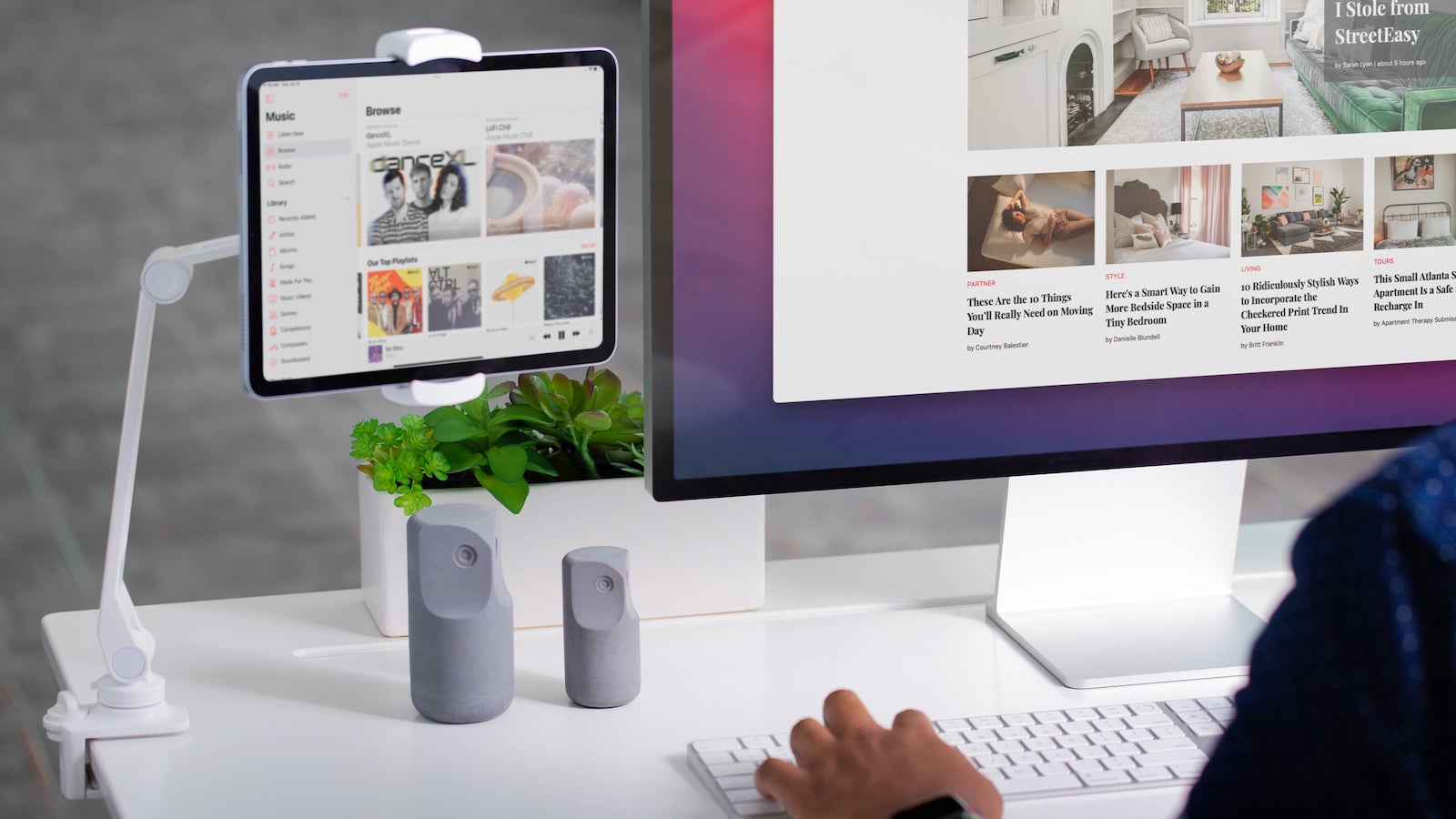 Work comfortably with the Twelve South HoverBar Duo (2nd gen) flexible iPad arm. This flexible arm includes a weighted desktop base and an adjustable shelf clamp. Use it for everything from recipes to work presentations.