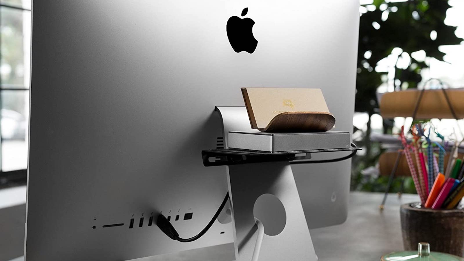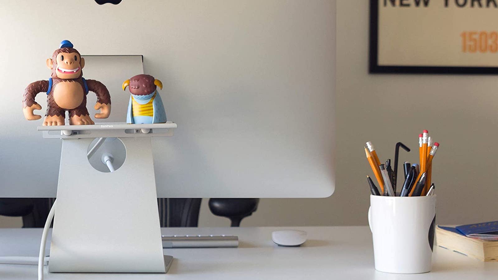 Or show your personality and entertain office visitors by displaying toys and gadgets behind your iMac on the Twelve South BackPack.