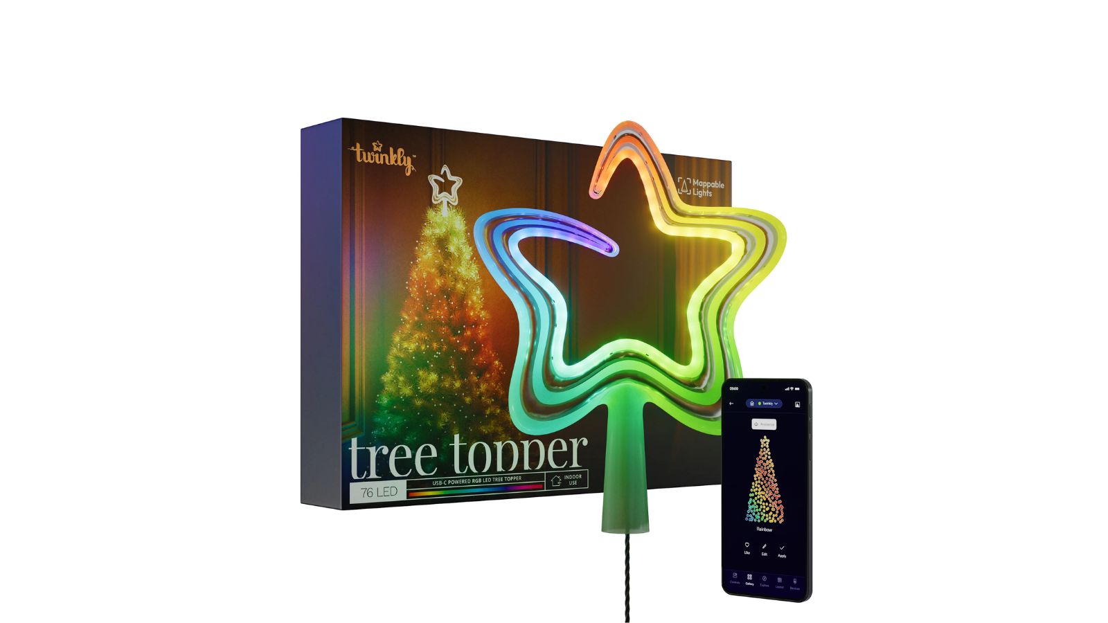 Twinkly Tree Topper: 76 Ultra-Vibrant, Smart LEDs for Customizable Lighting on Gadget Flow: Overview