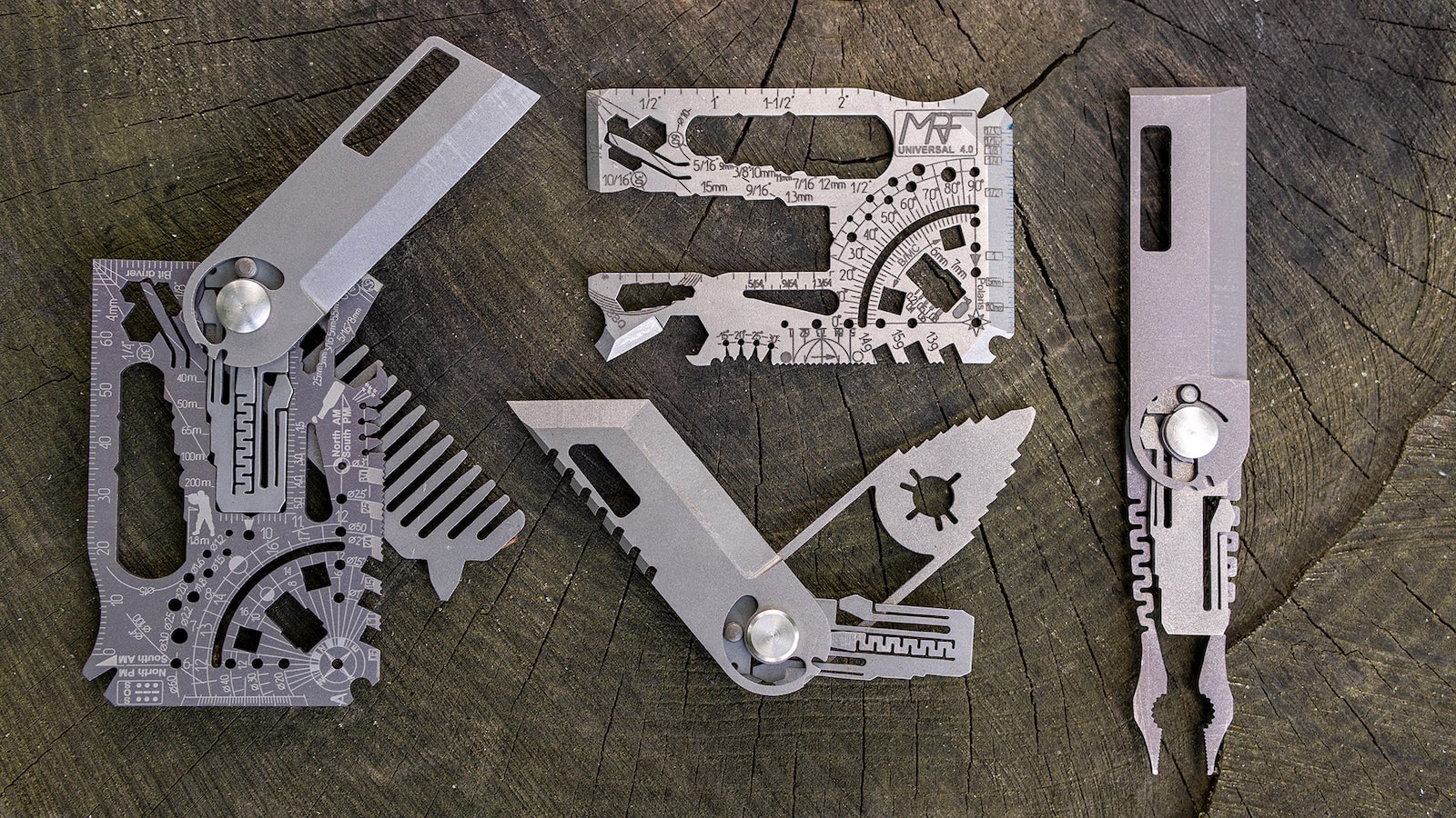 Choose the Garage, Military, Urban, Utility, or Wrench KIT to give you can openers, hex keys, bit drivers, sundials, scrapers, scoring tools, rulers, and more.