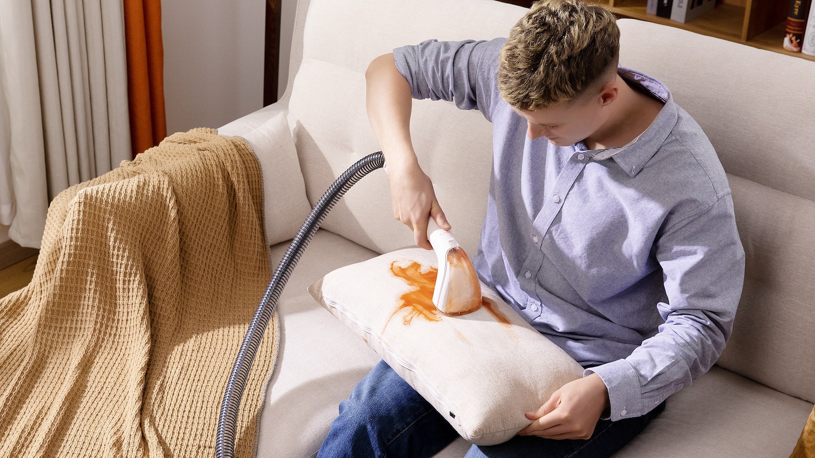 Compatible with various types of textiles, it has a 4-in-1 cleaning system that removes stains quickly even at the deepest level.