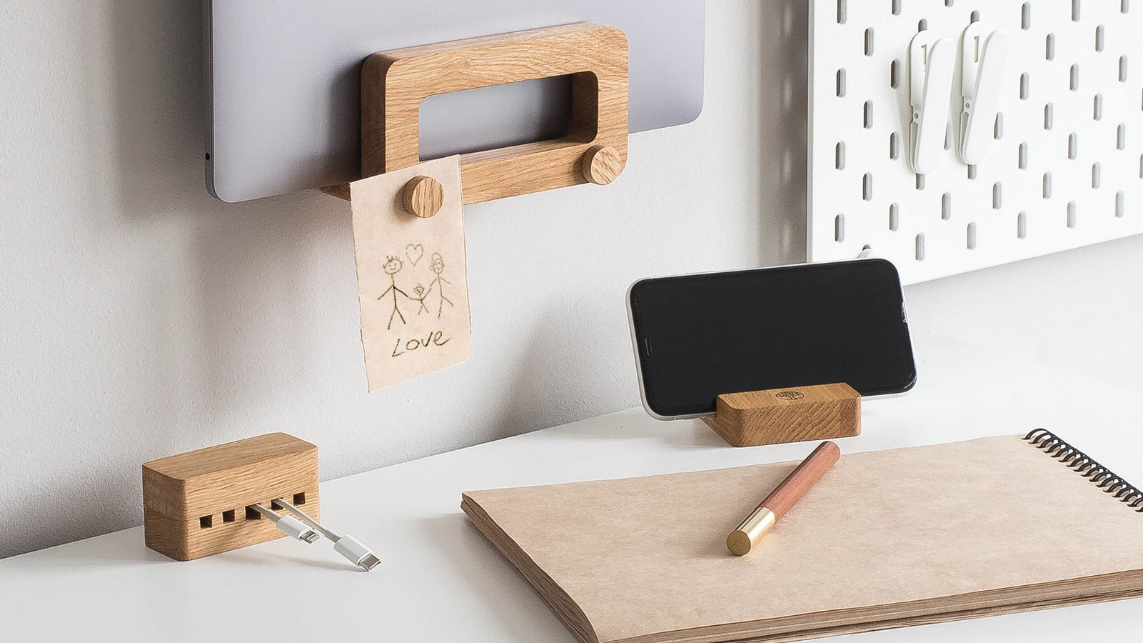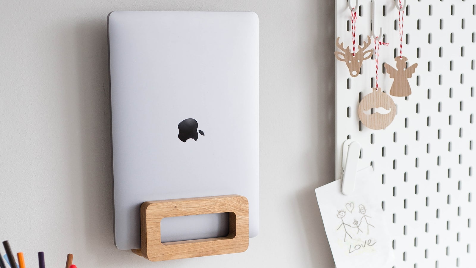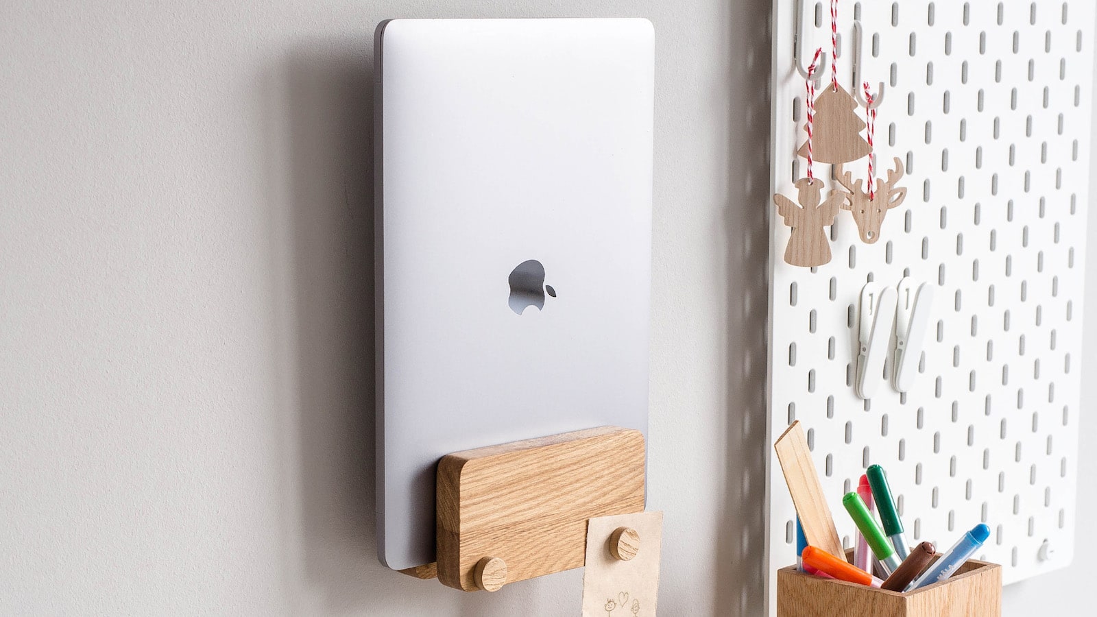 Wall-Mounted Wood Laptop Holder keeps your office organized and protects your MacBook: Overview