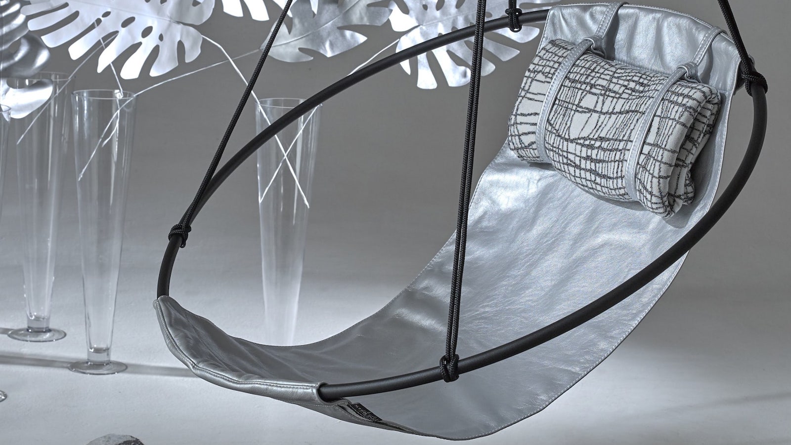 Available in 3 finishes—Soft Leather, Thick Leather, and Roses—these stunning chairs boast a circular frame with clean lines.