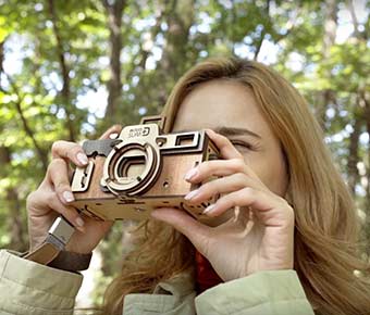 The UV coating on each wooden piece gives the camera a premium feel, making it enjoyable for anyone to assemble.
