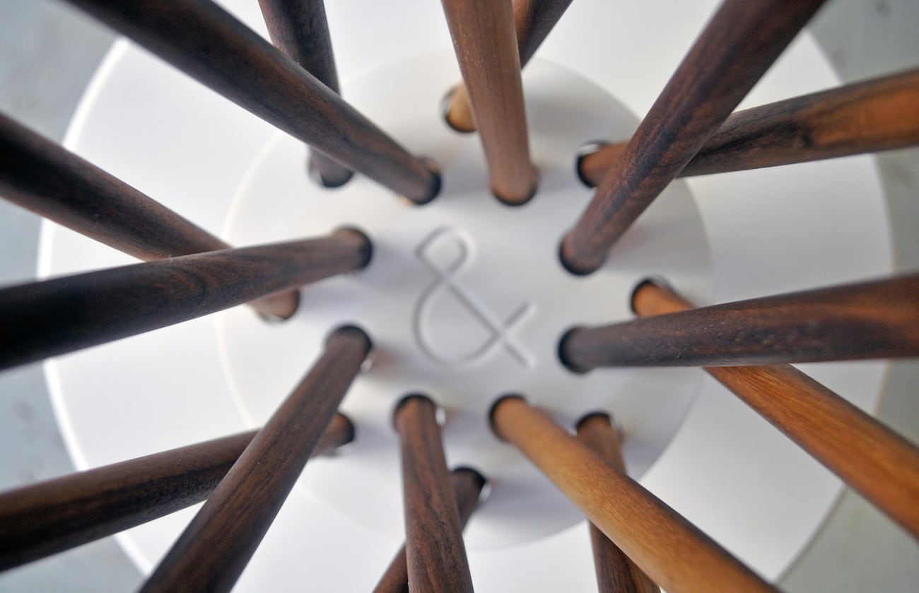 Made of American hardwood, a bundle of interwoven rods make up the table’s legs. Likewise, you can choose between Black Walnut, White Oak, or Hard Maple wood. The sleek DuPont Corian tops contrast with the wooden legs in a way that beautiful and eye-catching. Designed by Ampersand, the tables don’t use any adhesives or hardware. The pieces just fit together and remain in place with friction.
