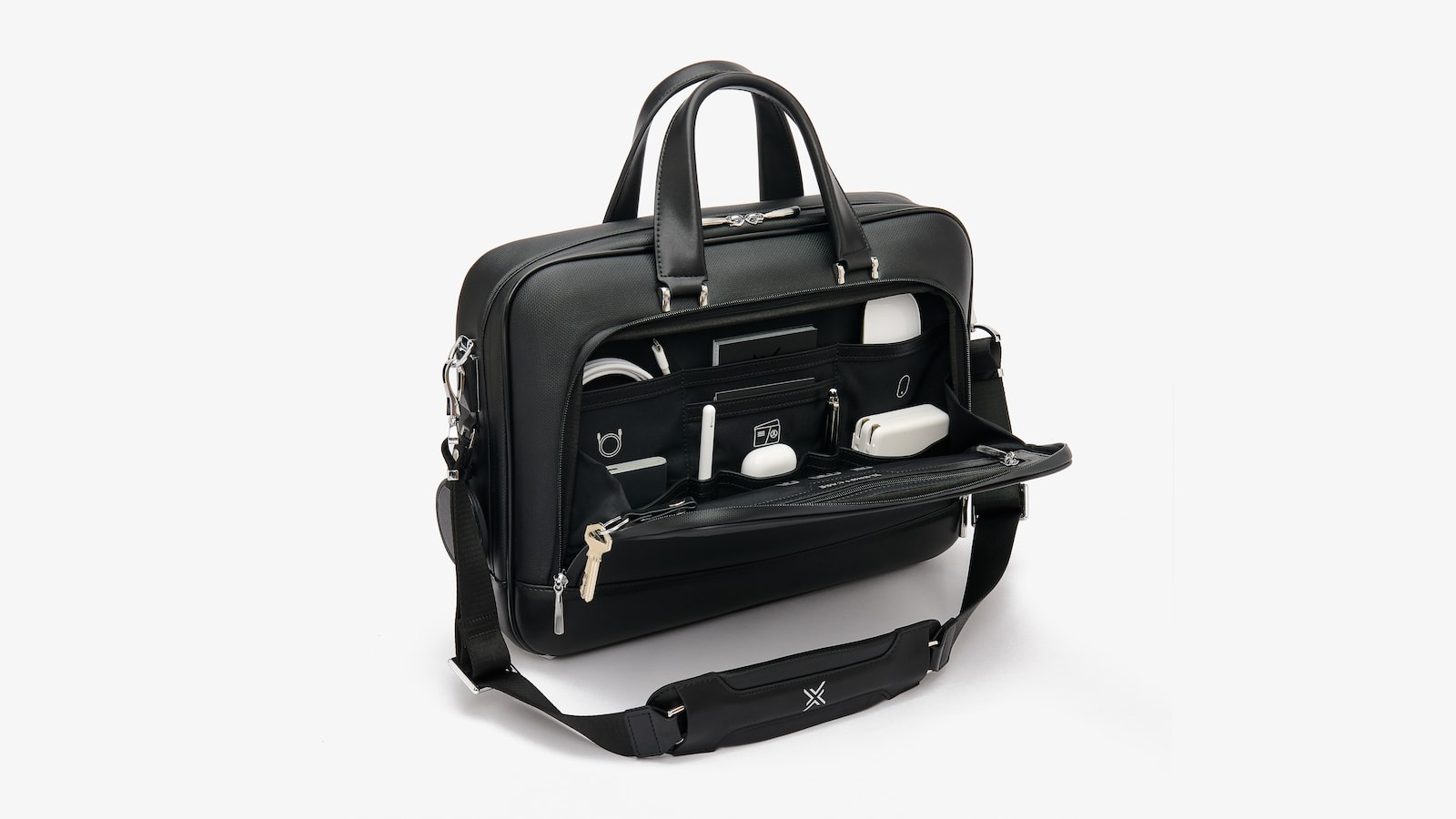 xBriefcase high-tech water-resistant briefcase has 19 smart pockets and drop protection: Overview