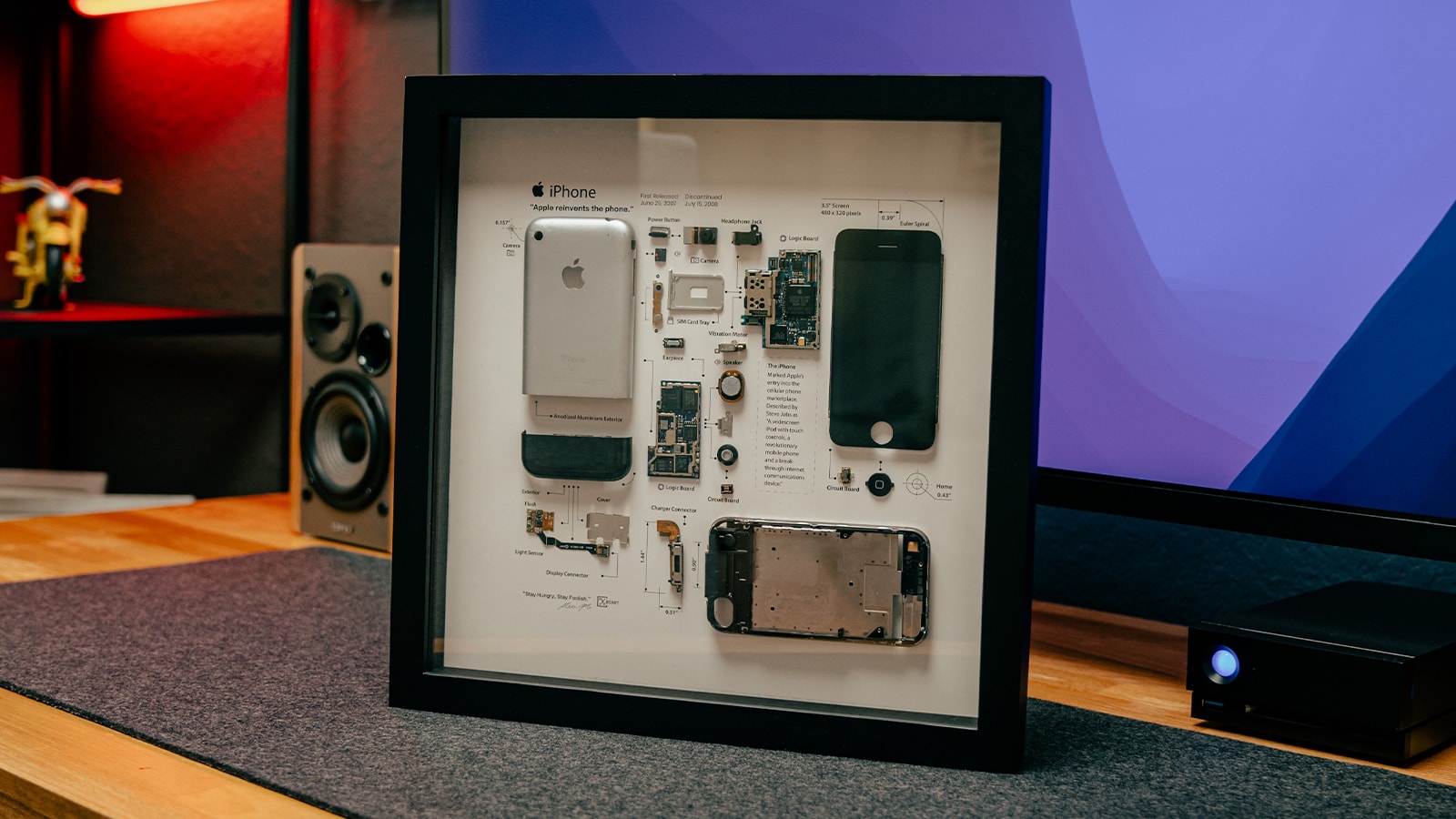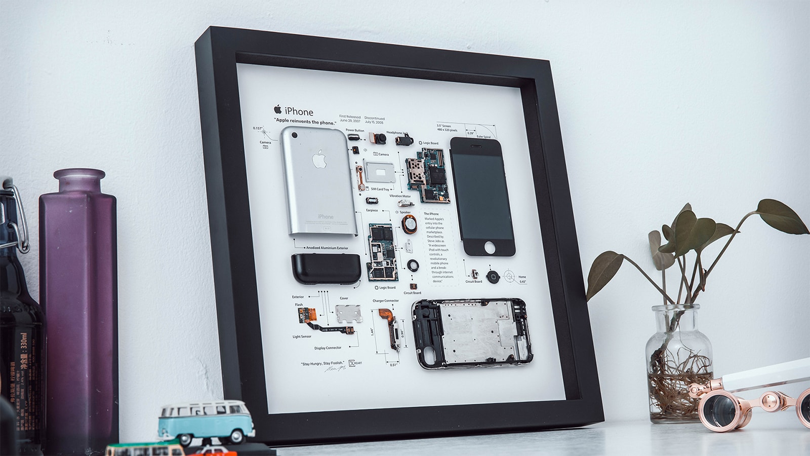 Highlight your love for Apple by hanging the Xreart Framed 1st-Generation iPhone on your wall. This impressive piece of art deconstructs the iPhone 2G so you can see every component.