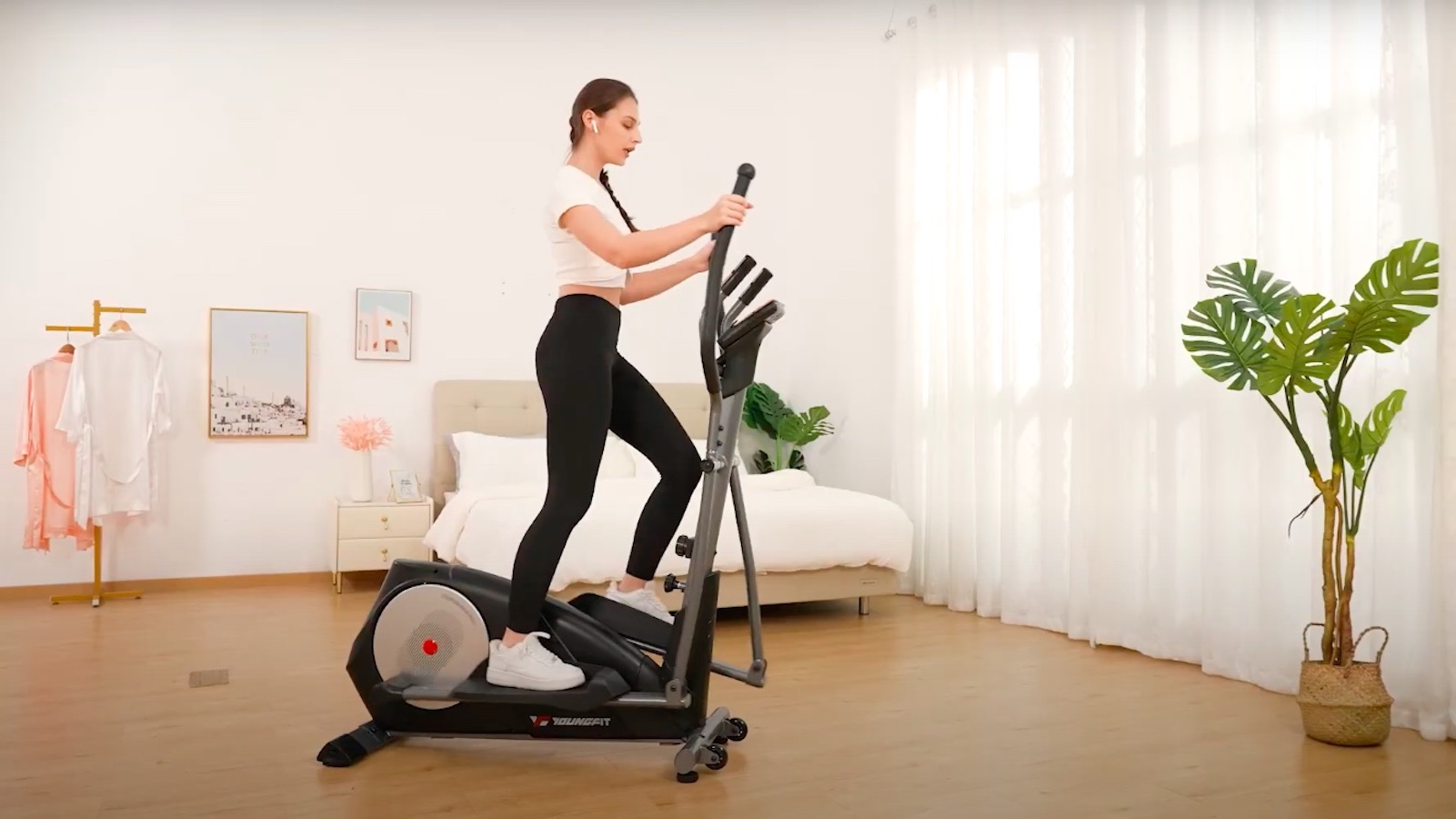 YOUNGFIT Elliptical Machine can quickly fold up for easy and efficient at-home storage: Overview